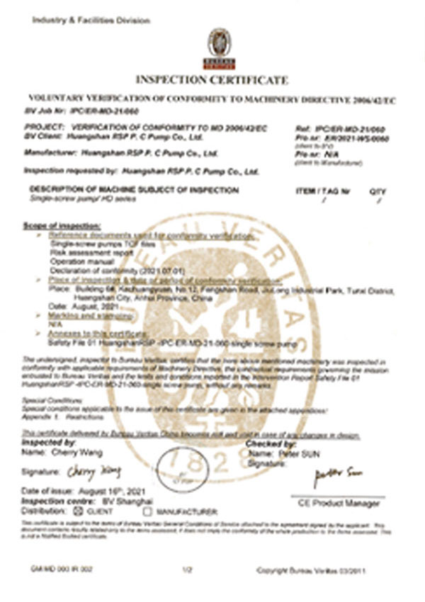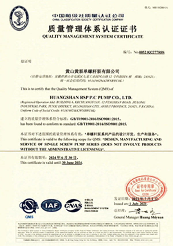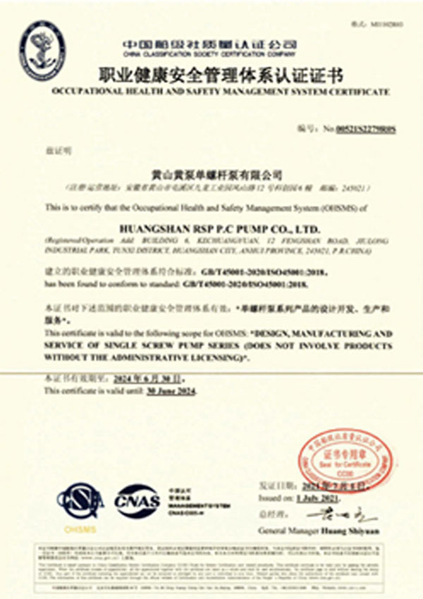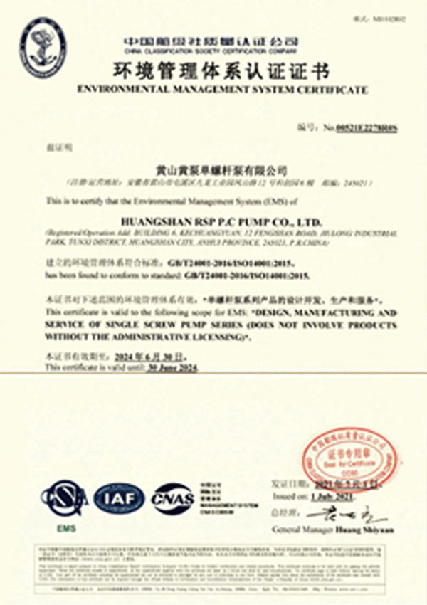 黃山388vip太陽集團單螺桿泵有限公司注重品質和服務,先后通過了ISO9001質量體系認證、IS014001環境體系證書ISO45001安全管理體系證、CE認證等